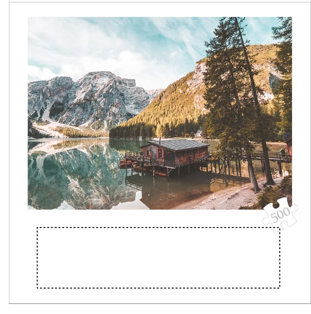 Quebra-cabeça de 500 peças. Apresentado numa caixa.Puzzle de 500 peças com desenho personalizado.