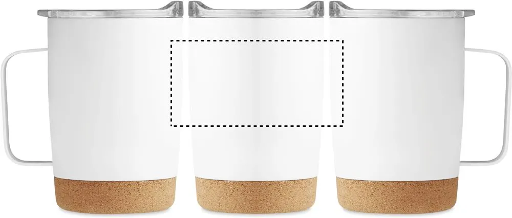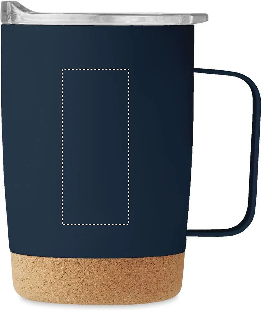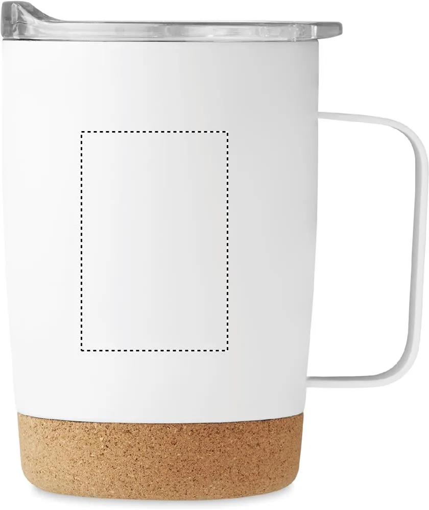 Copo de parede dupla de aço inoxidável com base de cortiça e tampa deslizante com furo de gole. Capacidade: 300 ml. A cortiça é um material natural, devido à sua natureza estrutural e porosidade da superfície, o resultado final da impressão por item pode ter desvios.Copo de parede dupla 300ml