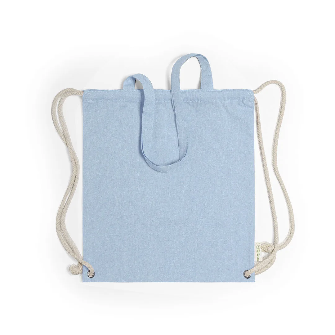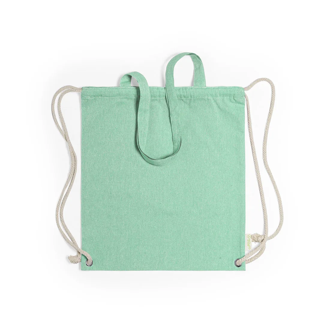 Saco mochila de cordões da linha nature, em resistente algodão reciclado 140g / m2, com alças de transporte de 70cm a condizer. Cordões de algodão de cor crua, com argolas metálicas reforçadas e distintivo algodão reciclado na etiqueta. Disponível numa variada gama de cores. Resistência até 9kg de peso.100% Algodão Reciclado 140 g/ m2