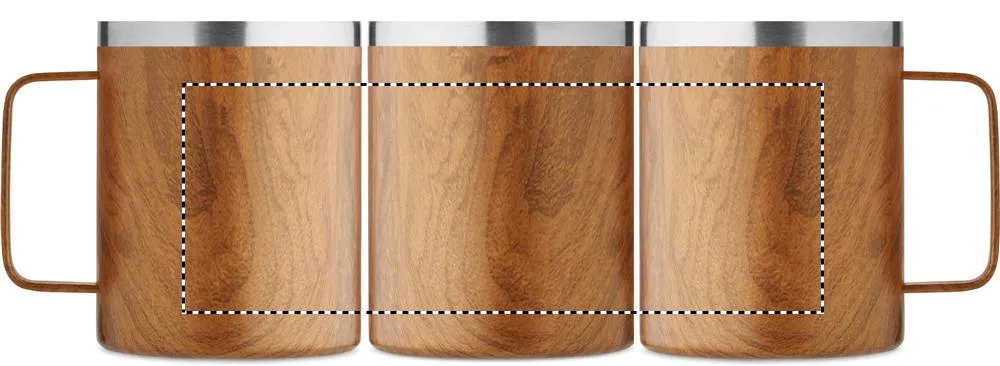 Caneca de parede dupla em aço inoxidável reciclado (90% aço inoxidável reciclado e 10% aço inoxidável) com acabamento de madeira e tampa com sistema de abertura deslizante. Capacidade: 300 ml.Caneca de parede dupla 300 ml