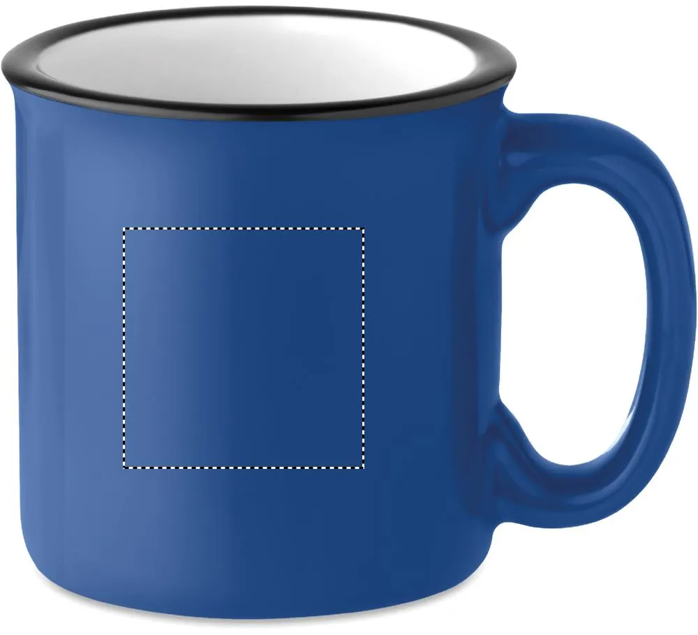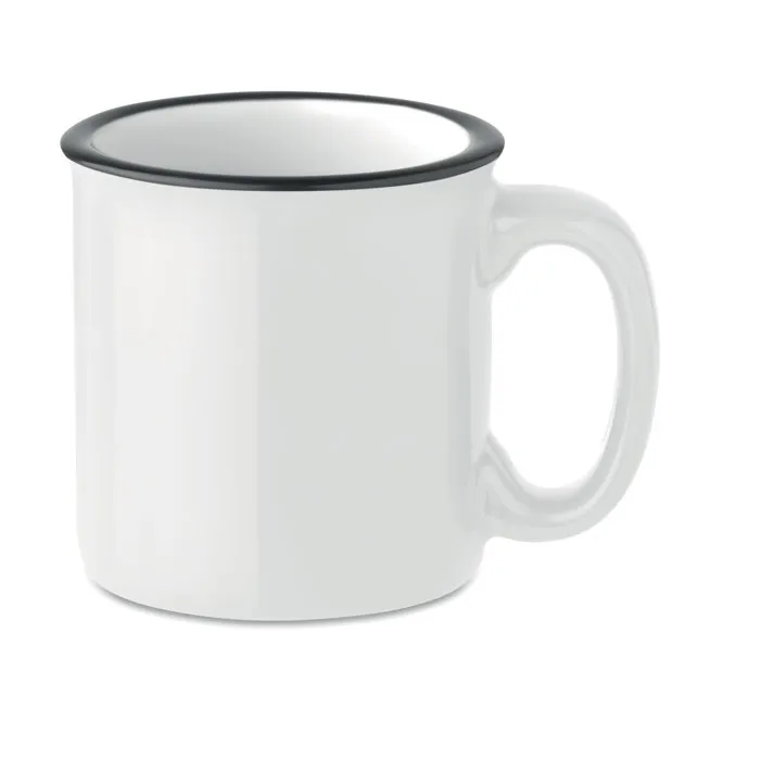 Caneca de cerâmica de 240 ml. Embalagem individual em caixa de cartão branca. O trânsfer cerâmico pode ser lavado na máquina de lavar louça.Caneca de cerámica Vintage