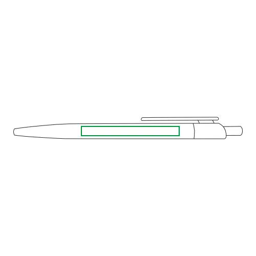 Esferográfica em ABS reciclado. Uma esferográfica reciclada, de design moderno, com clip largo colorido e corpo branco. Esta esferográfica de sistema push tem escrita azul. Consulte também a versão de corpo colorido 131542.Esferográfica em ABS reciclado, clip colorido