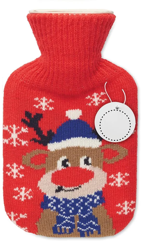 Garrafa de água quente com jersey em padrão natalino. Usado para fornecer calor, normalmente na cama, mas também para aplicar calor a uma parte específica do corpo. Capacidade de 250 ml.Garrafa de água quente 250ml