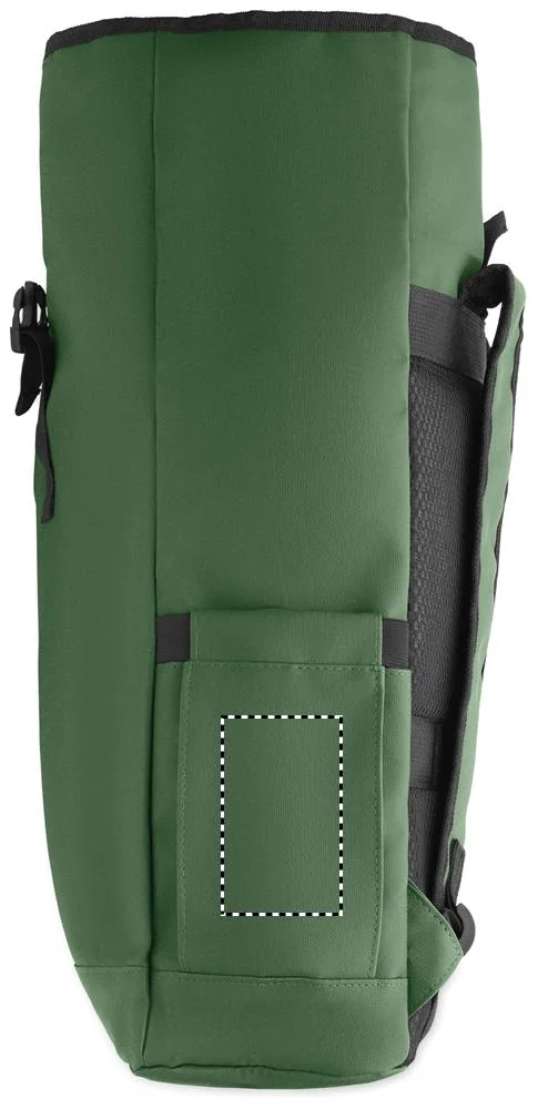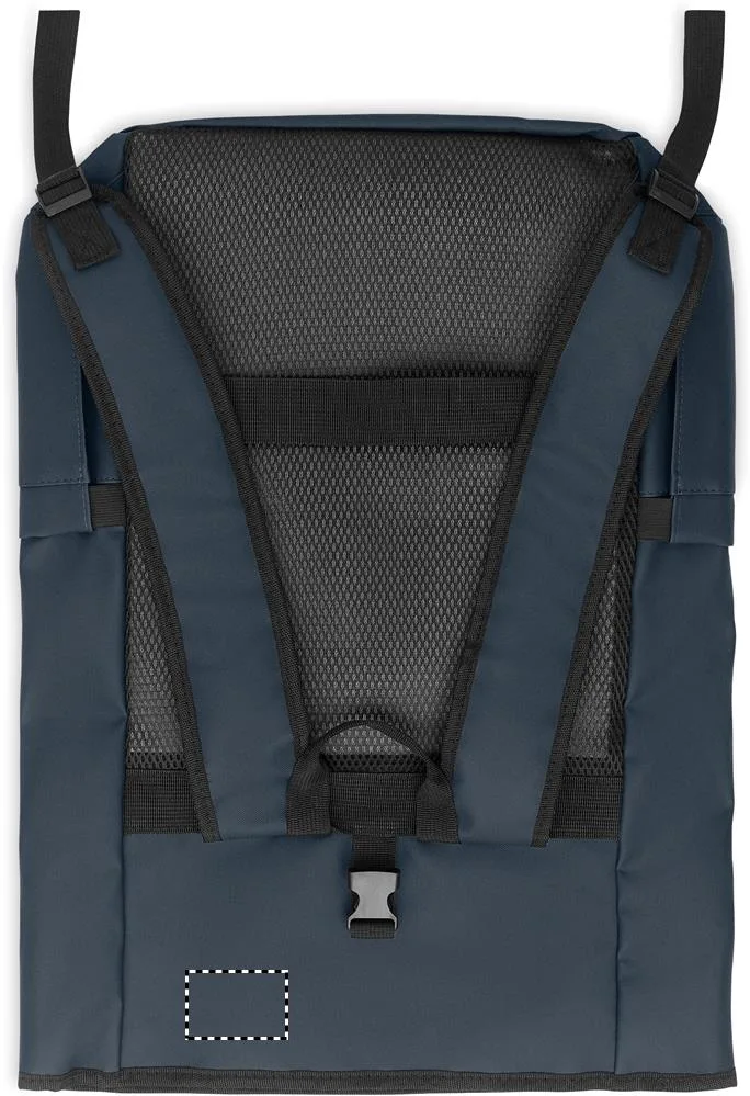 Mochila com fecho rolltop para portátil de 15” em RPET 600D revestido de PU e forro de poliéster RPET. Costas acolchoadas com malha, bolso com fecho e alça para trolley. Alça acolchoada com acabamento interior em malha.Mochila c/rodas portátil 600D