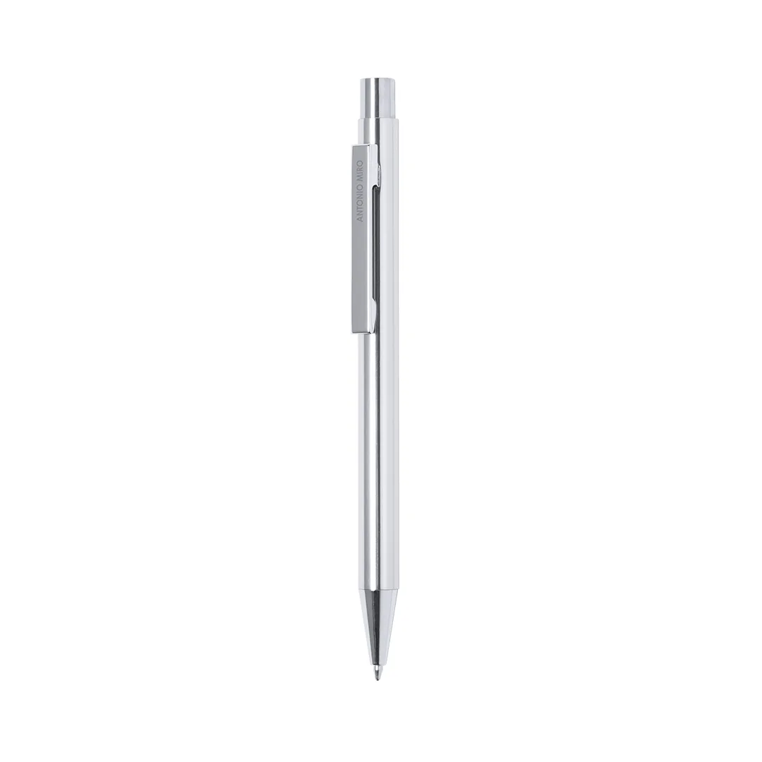 Caneta de bola de Antonio Mirã Com corpo de alumínio em uma ampla gama de tons brilhantes e cor prateada. Mecanismo de flexão e apresentado na bolsa com o logotipo da marca. Tinta azul.Alumínio