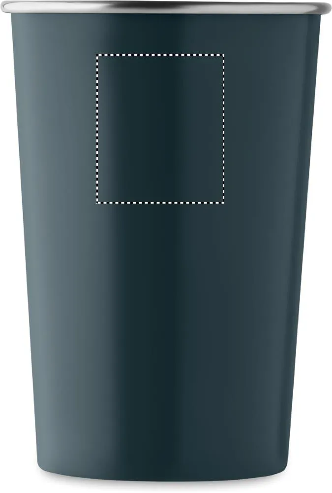 Copo reutilizável em aço inoxidável reciclado. (90% de aço inoxidável reciclado e 10% de aço inoxidável) Capacidade: 350 ml. Como se trata de uma caneca de parede única, a transferência de calor ainda pode ocorrer.Copo aço inoxidável reciclado
