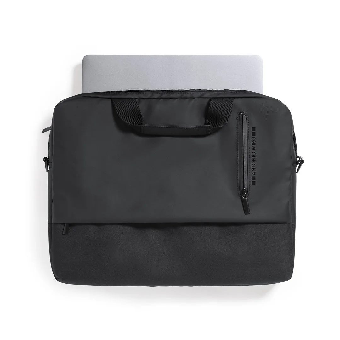 Pasta Antonio Miró de qualidade premium em resistente poliéster 600D. Com um design sóbrio e compartimento acolchoado para portátil de até 15polegadas. Com confortável pega de transporte reforçada, fechos de correr com puxadores metálicos e bolso frontal. Logotipo da marca na frente.Poliéster 600DAcolchoado. Bolso Acolchoado para Portátil