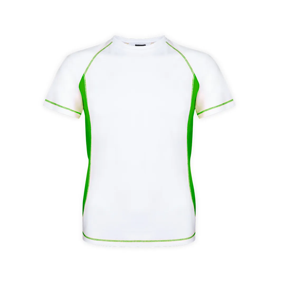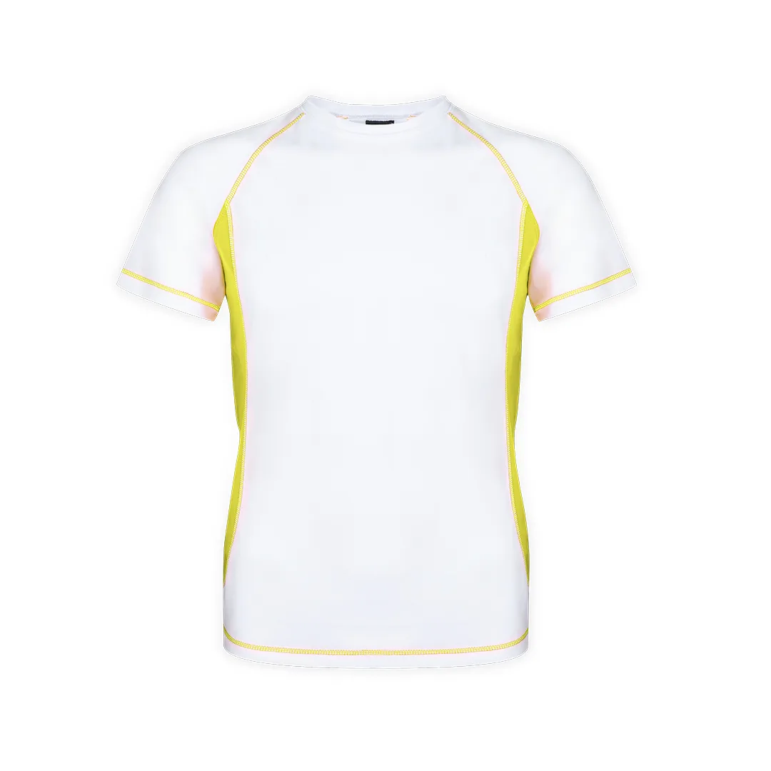 Camiseta técnica para adulto em material de poliéster 100% respirável de 135g/m2. Projete em branco com costuras de reforço e lados de cores vivas. Disponível nos tamanhos S, M, L, XL, XXL.100% Poliéster 135 g/ m2Respirável