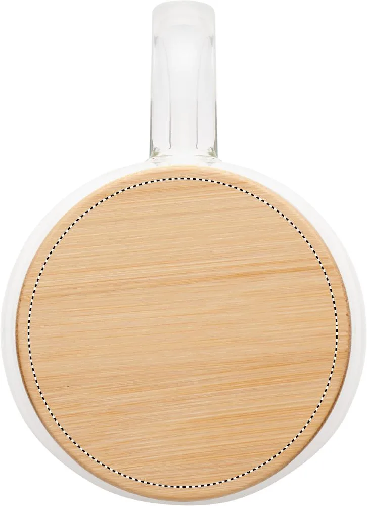 Caneca de vidro borossilicato de parede dupla com pega e tampa de bambu. Capacidade: 450 ml.Caneca de parede dupla 450ml