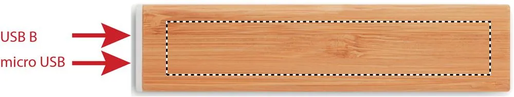 Power Bank 2200 mAh com acabamento em bambu. Para uso em smartphone, output DC5V/1A. Inclui luz indicadora, cabo micro USB e conector Type-C. O bambu é um material natural, a cor do item, o tamanho e a impressão podem variar.Power Bank bambu 2200 mAh