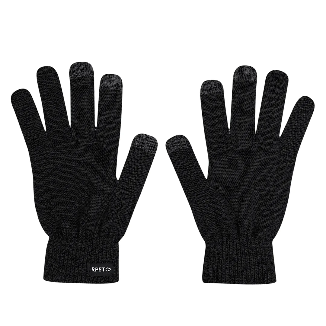 Luvas feitas de tecido de poliéster RPET quente e macio, para dispositivos touchscreen. Com funcionalidade de touchscreen nos dedos médio, indicador e polegar em cor correspondente. Com etiqueta RPET.O material RPET é feito de plástico reciclado, promovendo assim a reutilização de resíduos plásticos e ajudando na sustentabilidade do planeta.Poliéster RPETTamanho Único. Adulto