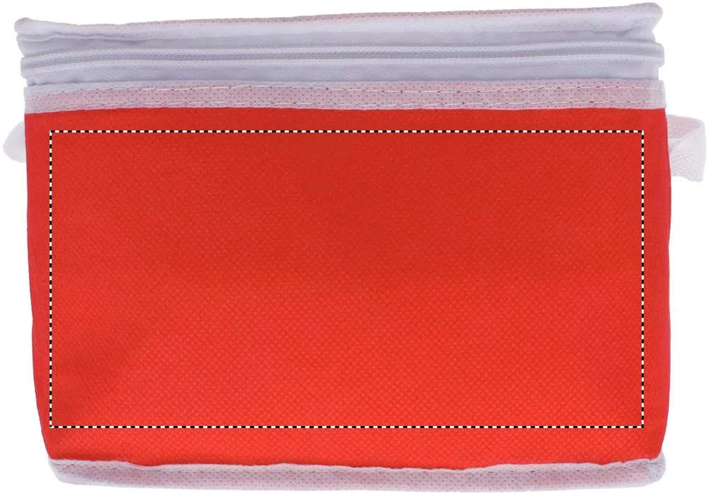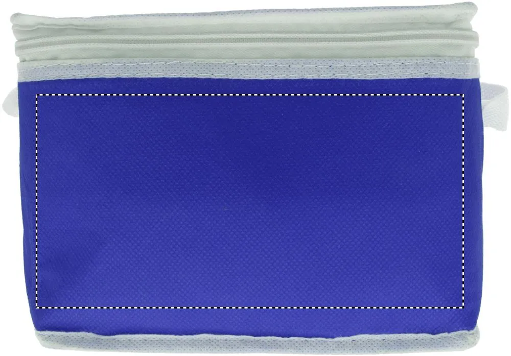 Saco térmico de folha de alumínio para 6 latas. Exterior em non woven com guarnições brancas. 80 gr / m. Material de Isolamento: Espuma com laminado de papel de alumínio. 3L.Cooler 6 latas em non-woven