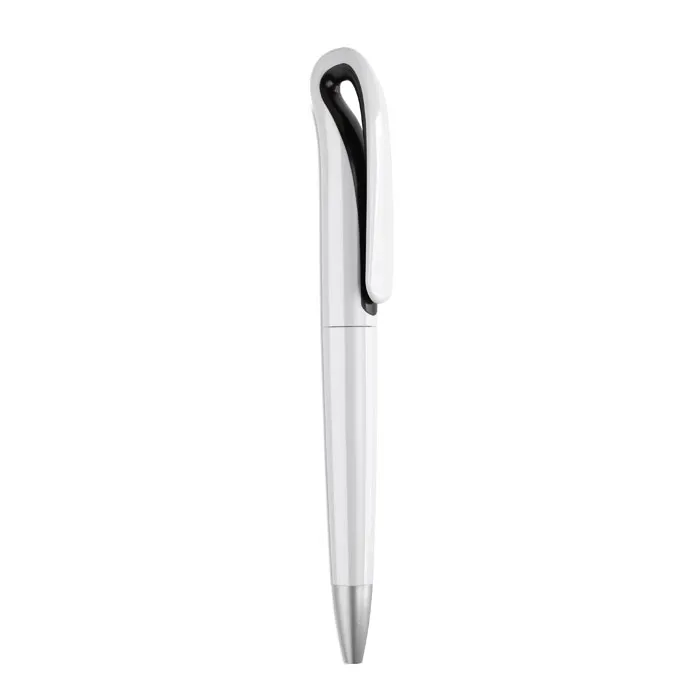 Esferográfica giratória em ABS com forma de pescoço de cisne. Escrita azul.Esferográfica giratória ABS