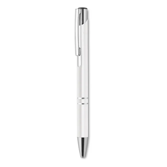 Caneta de botão comacabamento anodizado tinta azul.Esferográfica alumínio