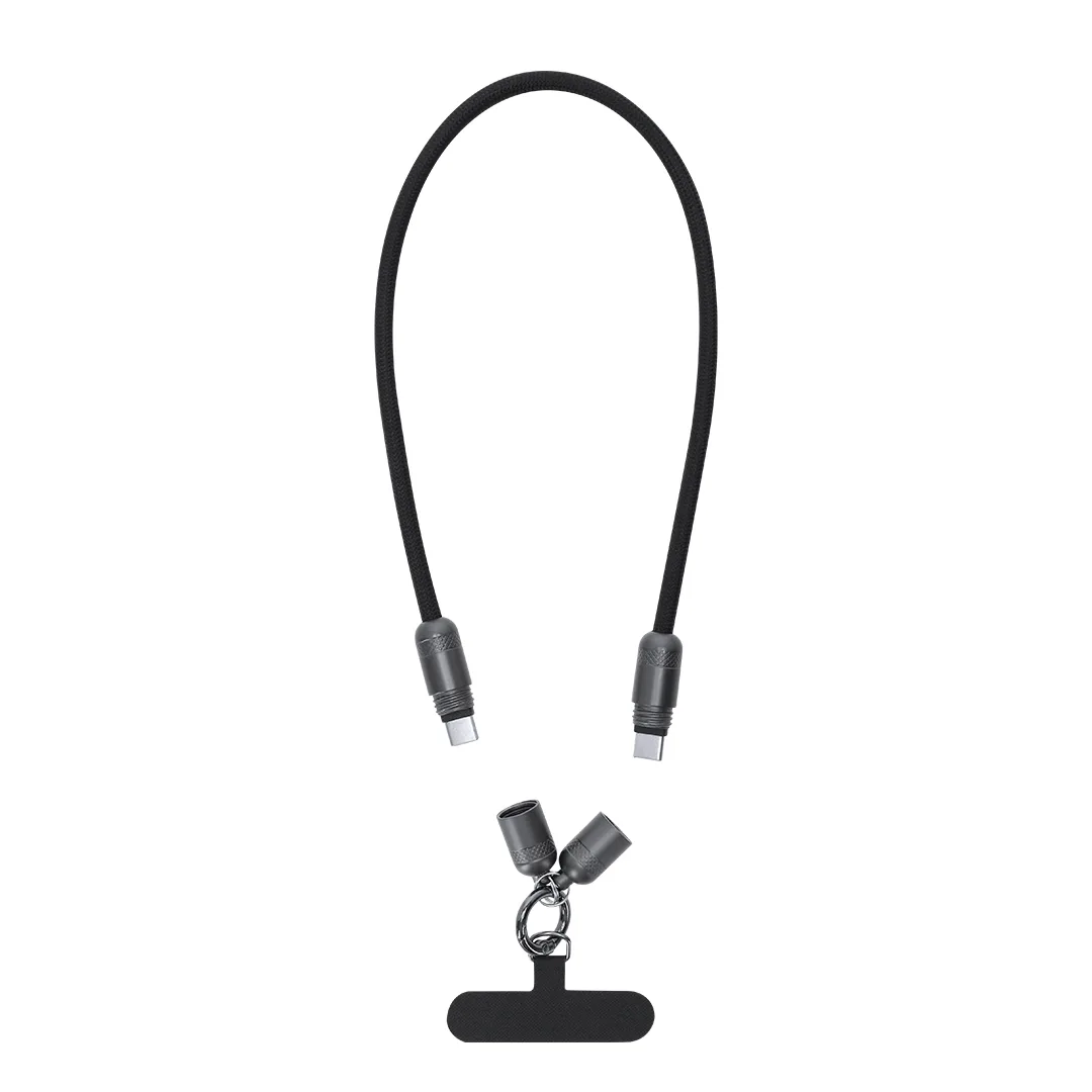 Ref: BEC39912MOLanyard cabo de carregamento, função de transferência de dados e suporte para telemóvel. Com entrada/saída Tipo C e capacidade de 60W, permitindo carregamento rápido. Funcionalidade e comodidade num único acessório.