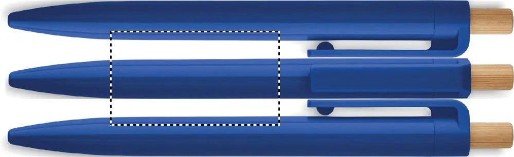 Caneta em ABS reciclado com botão de bambu. Tinta azul.Esferográfica em ABS reciclado