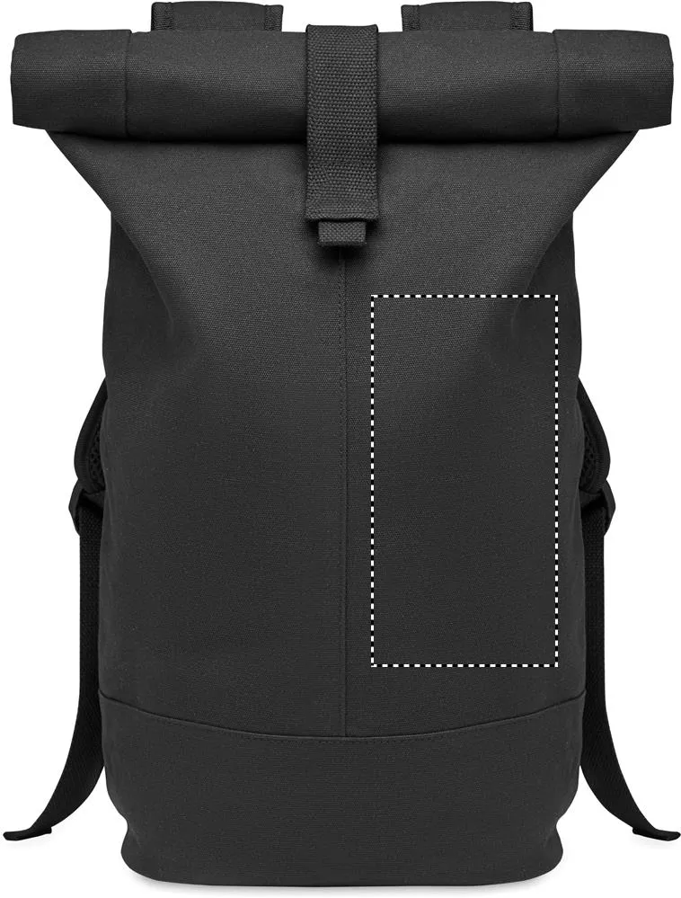 Mochila Rolltop em lona lavada de 340 gr/m² de alta qualidade com reforço acolchoado nas costas. O forro é em RPET 210D.Mochila de lona lavada Rolltop