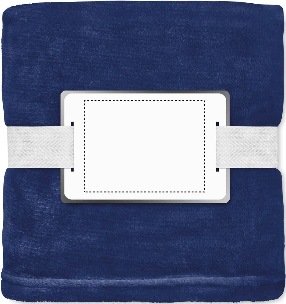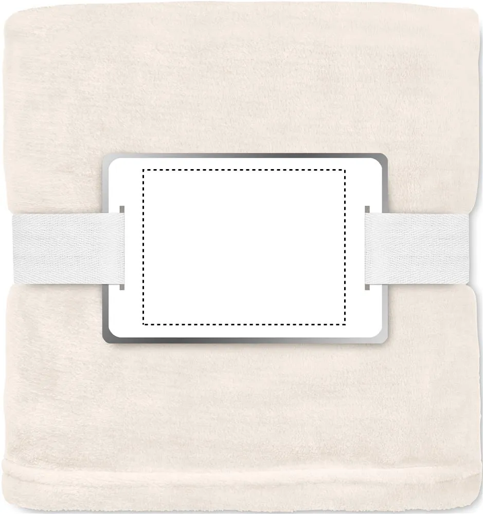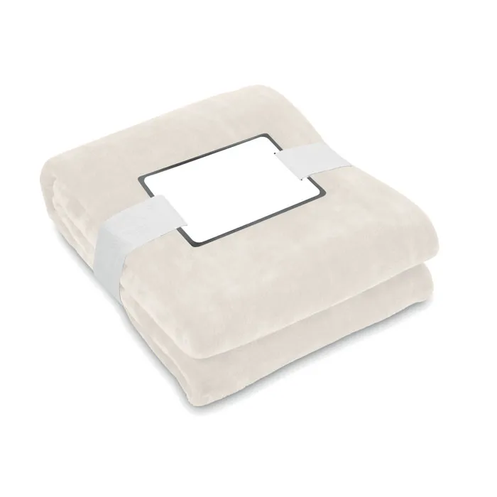 Manta de lã de flanela RPET de 280 gr/m² envolvida em fita e cartão imprimível.Manta flanela RPET 280 gr/m²
