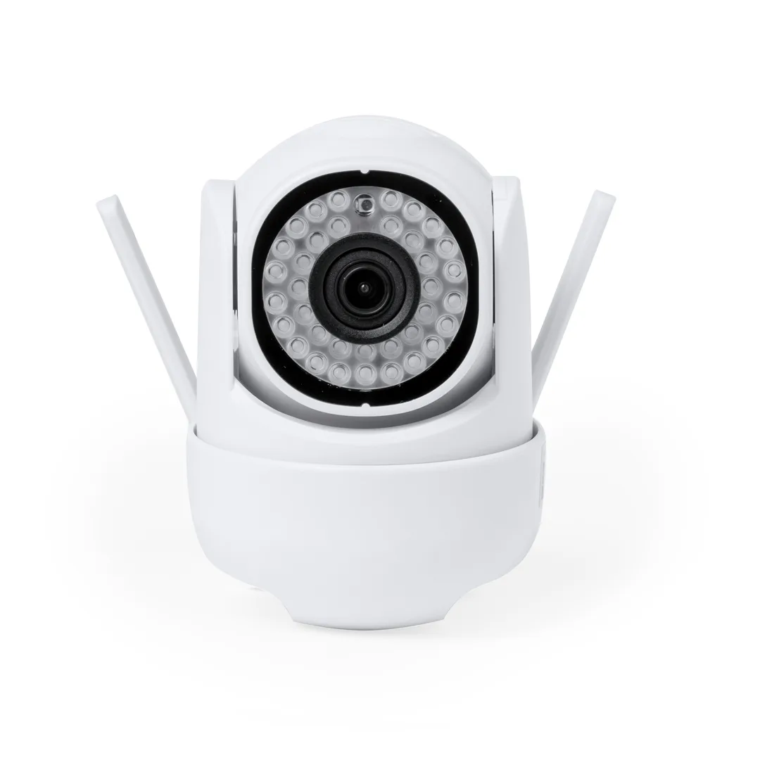 Câmara de segurança inteligente HD 360° com suporte e fixação para a parede. Controlo e visualização à distância, ligação Wi-Fi, sistema de notificação push, captura de vídeo e áudio em tempo real, câmara fotográfica, altifalante, detetor de movimento com visão nocturna e alarme. Sistema de configuração simples, com alimentação AC 220V-240V. Apresentado numa caixa atrativa de design, com manual de instruções em espanhol e inglês.Wifi. AC 220-240V