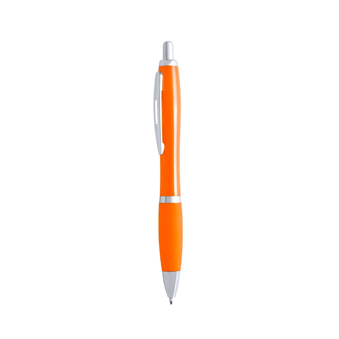 Ref: BEC4105MOEsferográfica com um design bicolor ousado, com acessórios na cor prateada, corpo com acabamento suave e em várias cores. Clip de metal original e confortável. Com anel central prateado. Escrita de tinta azul.