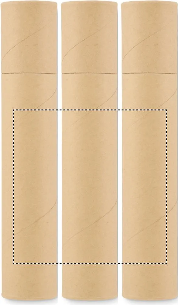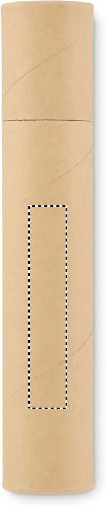 Estojo cilíndrico de papel que inclui 2 lápis, 1 caneta, 1 apontador de madeira e 1 borracha.Conjunto de escrita no caso