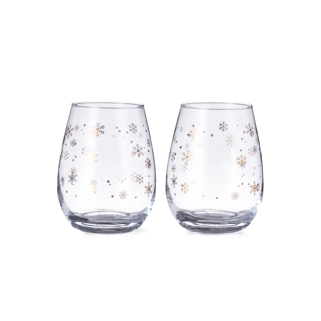 Conjunto de 2 copos com original design de flocos de neve 500ml de capacidade. Fabricados em vidro, com área de impressão especial na parte frontal. Apresentado numa caixa de design de color preta com ilustração na cor dourada.Vidro2 Peças. 500 ml