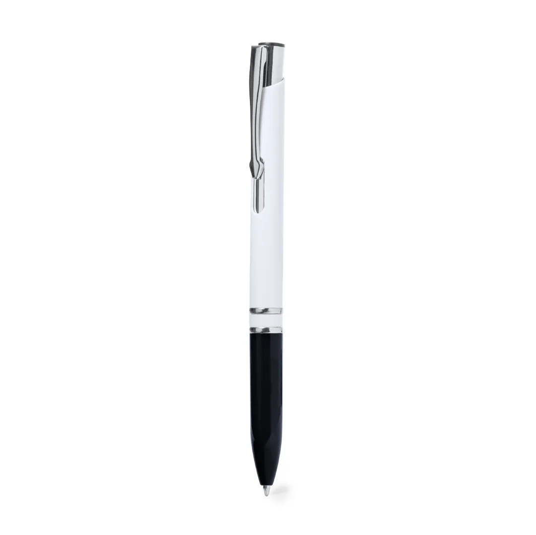 Ref: BEC42202MOElegante esferográfica com mecanismo pulsador. Com corpo acabamento em cor branco brilho e pega numa variada gama cores. Fabricada em resistente ABS acabamento brilho. Com carga jumbo e tinta azul.