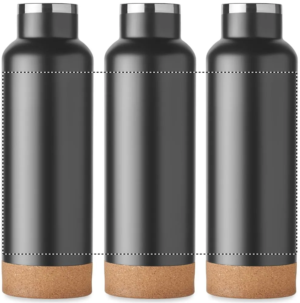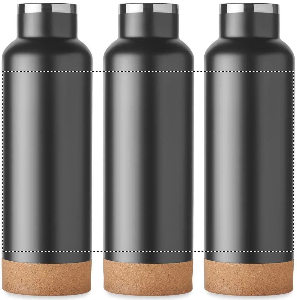 Garrafa de parede dupla isolada a vácuo feita de aço inoxidável reciclado com uma tampa com pega e base com pormenor de cortiça. À prova de fugas. Capacidade: 500 ml. (90% aço inoxidável reciclado e 10% aço inoxidável).Garrafa de parede dupla 500ml