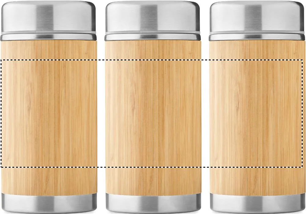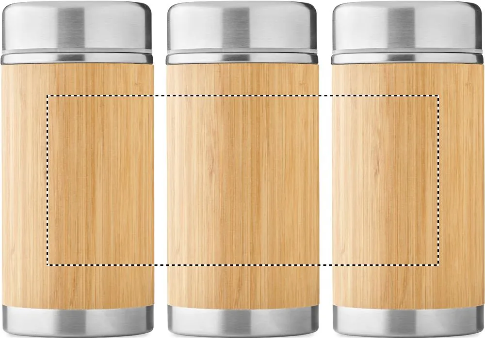 Frasco para alimentos de parede dupla em aço inoxidável isolado com tampa de rosca em acabamento bambu. Capacidade: 600 ml. O bambu é um material natural, a cor do item, o tamanho e a impressão podem variar.Frasco de parede dupla 600 ml
