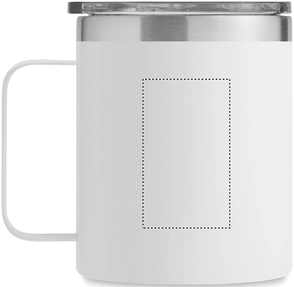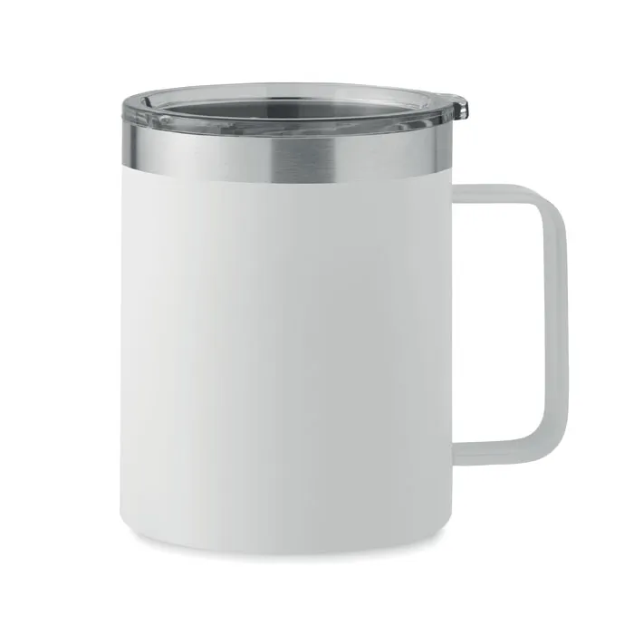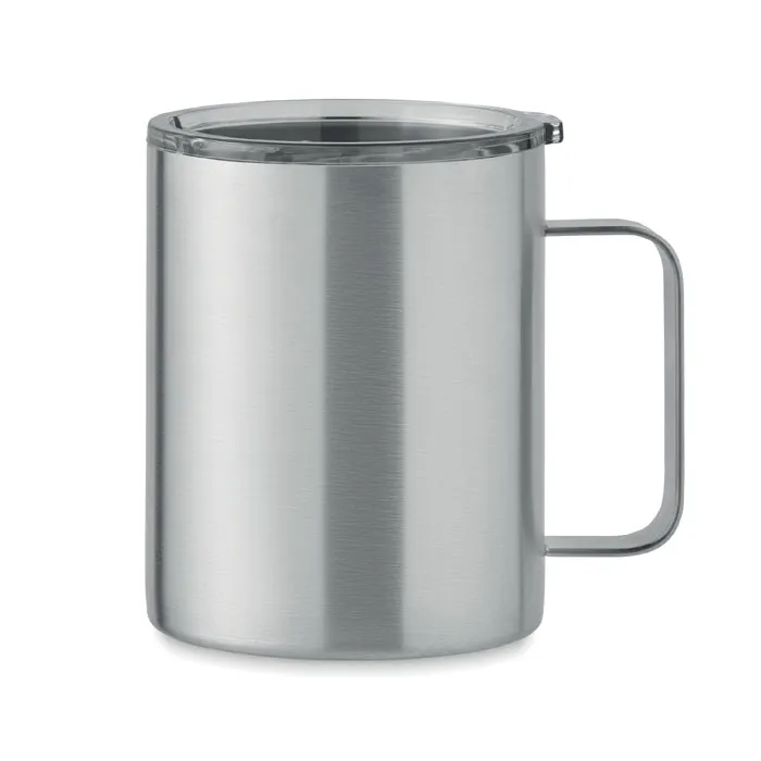 Copo de parede dupla em aço inoxidável reciclado (90% aço inoxidável reciclado e 10% aço inoxidável) com tampa deslizante. Capacidade: 300 ml.Caneca de parede dupla 300 ml