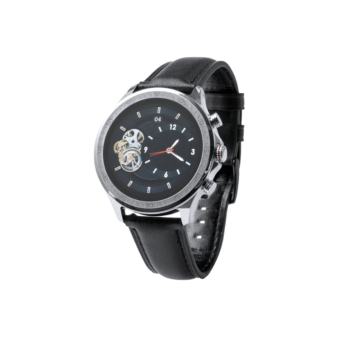 Relógio inteligente multifunções com design casual, com ligação Bluetooth®. Capa de design circular elegante e bracelete em pele. Ecrã táctil TFT de 1,32 polegadas e bateria de 230 mAh, que o tornam o gadget perfeito para todos os tipos de desporto, lazer e vida quotidiana. Multiplicidade de funções disponíveis, interface multilingue e resistente a salpicos, com APP disponível para iOS e Android. Apresentado numa caixa de design individual, com manual de instruções em espanhol e inglês.Bracelete PeleConexão Bluetooth. Ecrã TFT 1,32". Bateria 230 mAh
