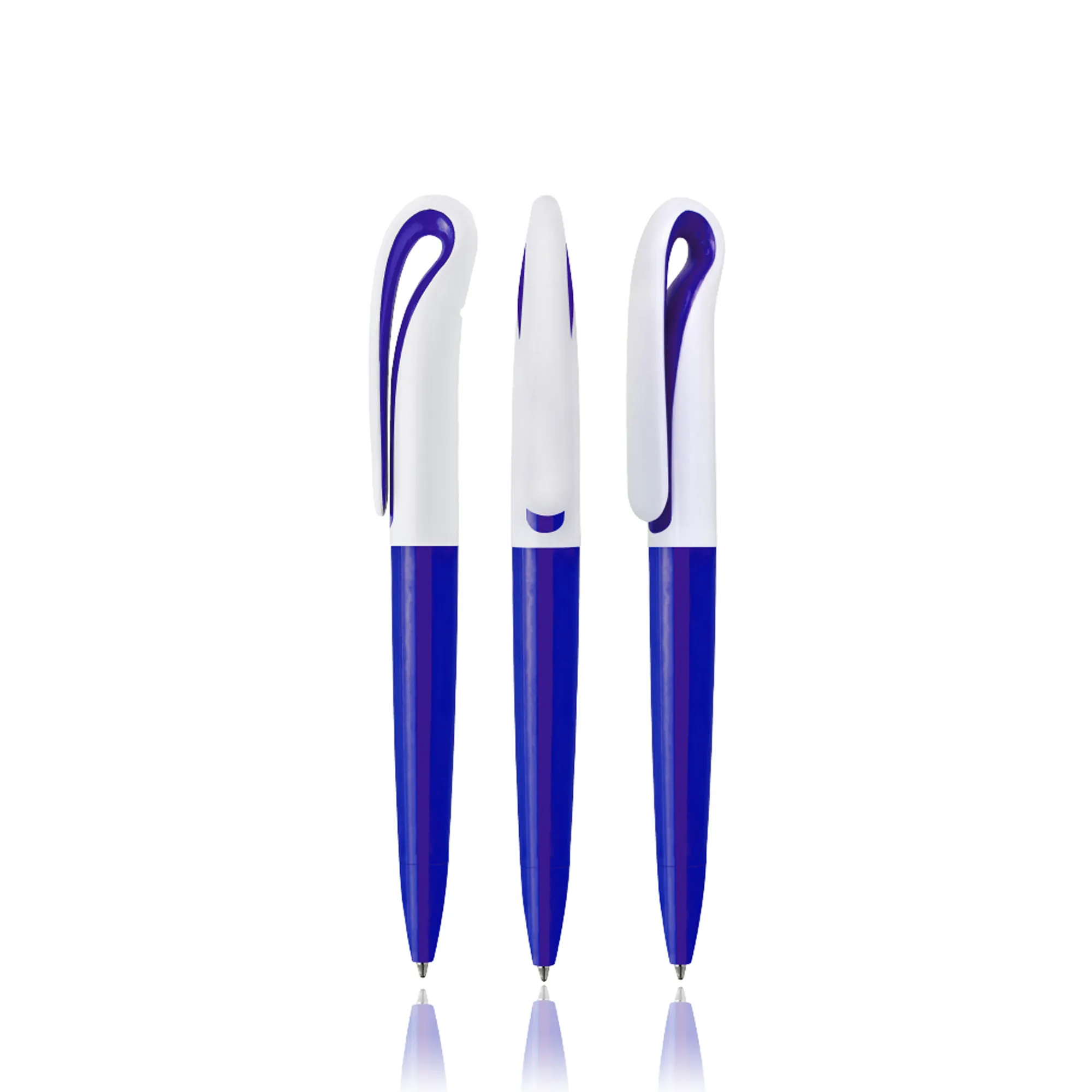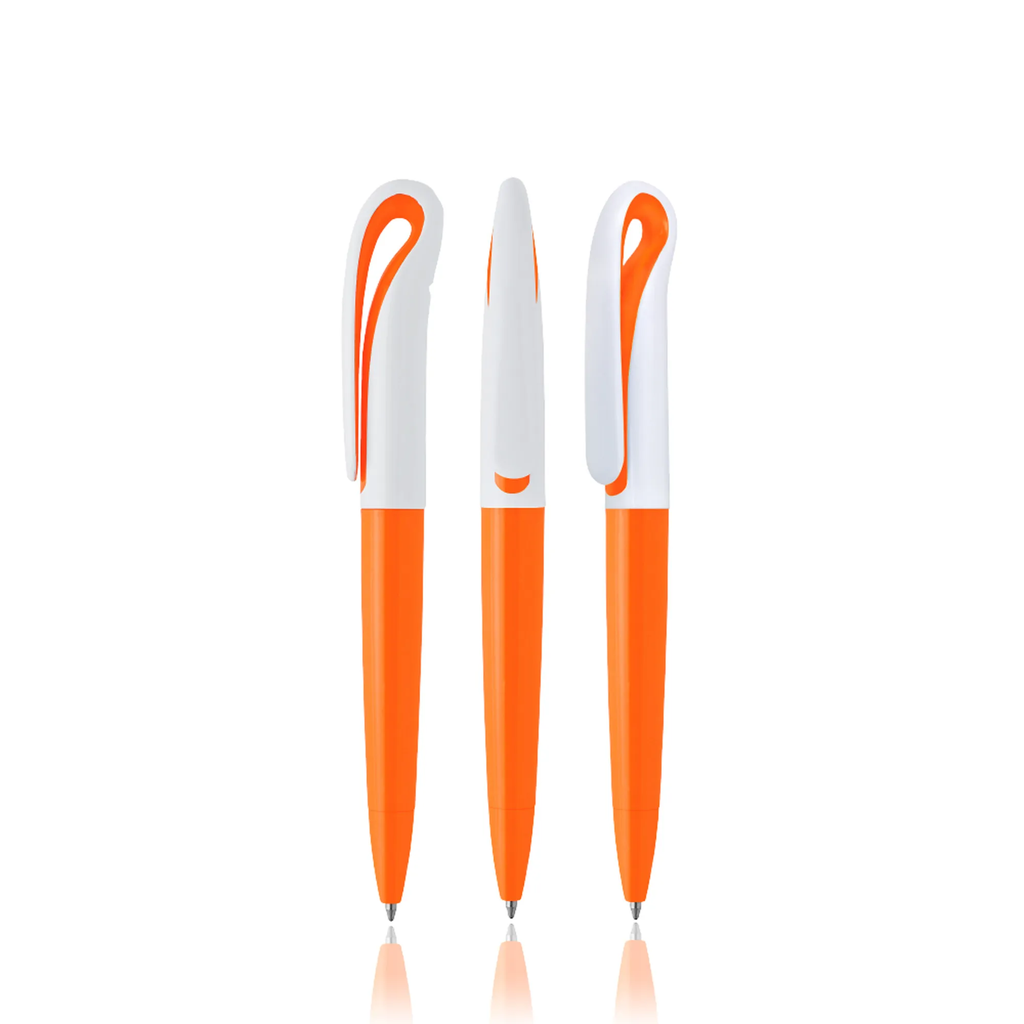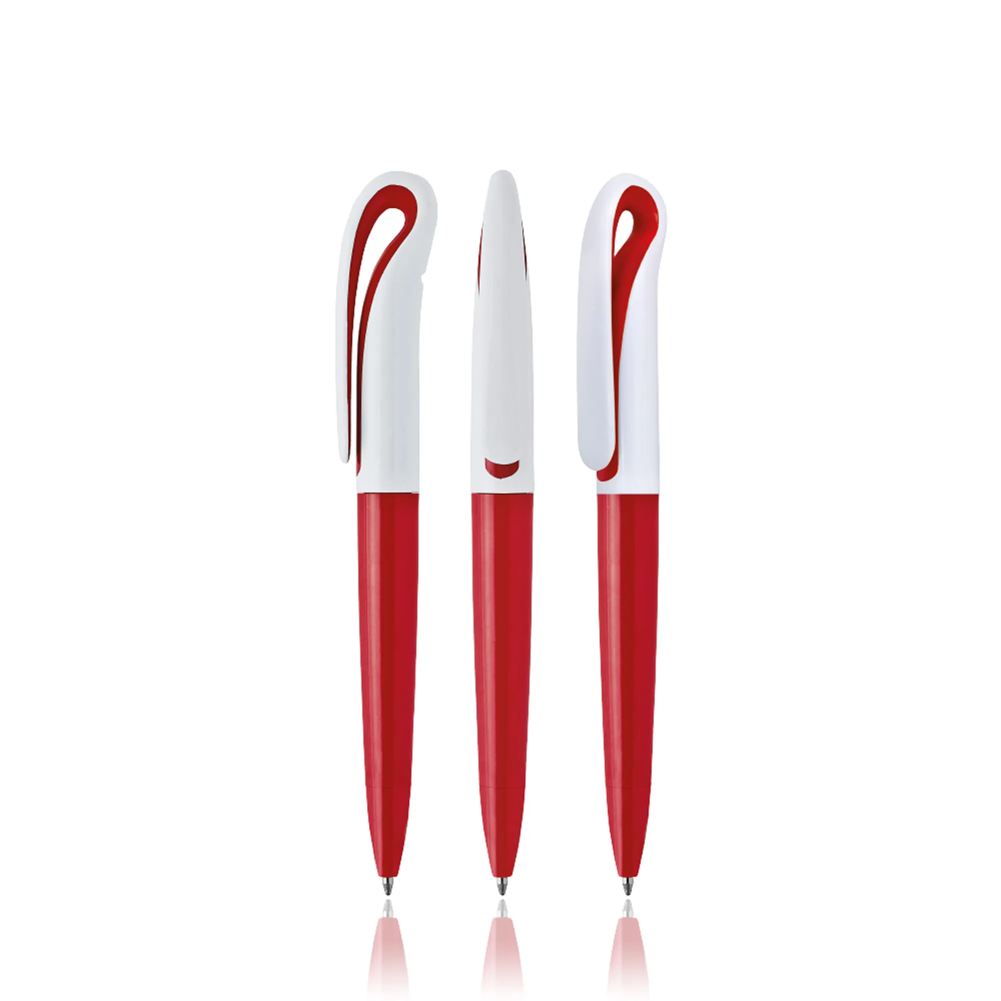 Esferográfica de plástico, cisne. Escrita preta, sistema twist. Com um \"design\" diferente e moderno, conta com um detalhe colorido por dentro do clip. Ótima para dar o twist necessário à sua marca.Esferográfica em plástico, Cisne