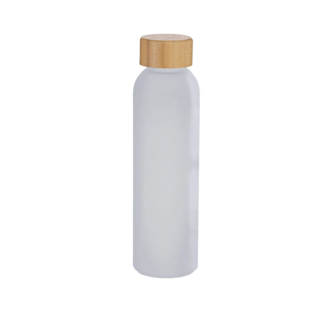 Garrafa em Vidro Reciclado, acabamento fosco, de 500 ml de capacidade e tampa em bambu. Inclui distintivo de Vidro Reciclado.Vidro Reciclado/ Bambu500 ml