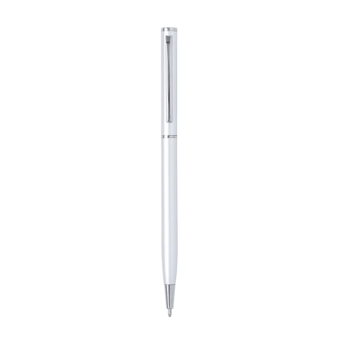 Esferográfica com corpo em alumínio reciclado. Clip de metal e acessórios cromados, com mecanismo giratório e tinta azul. Com logotipo de Alumínio Reciclado.O Alumínio Reciclado é um material com possibilidades quase infinitas de reciclagem, mantendo suas propriedades originais e consumindo menos energia nesse processo. Certificação GRS (Global Recycled Standard/Norma Global de Reciclagem), que garante a origem reciclada do material utilizado no fabrico do produto.Alumínio Reciclado