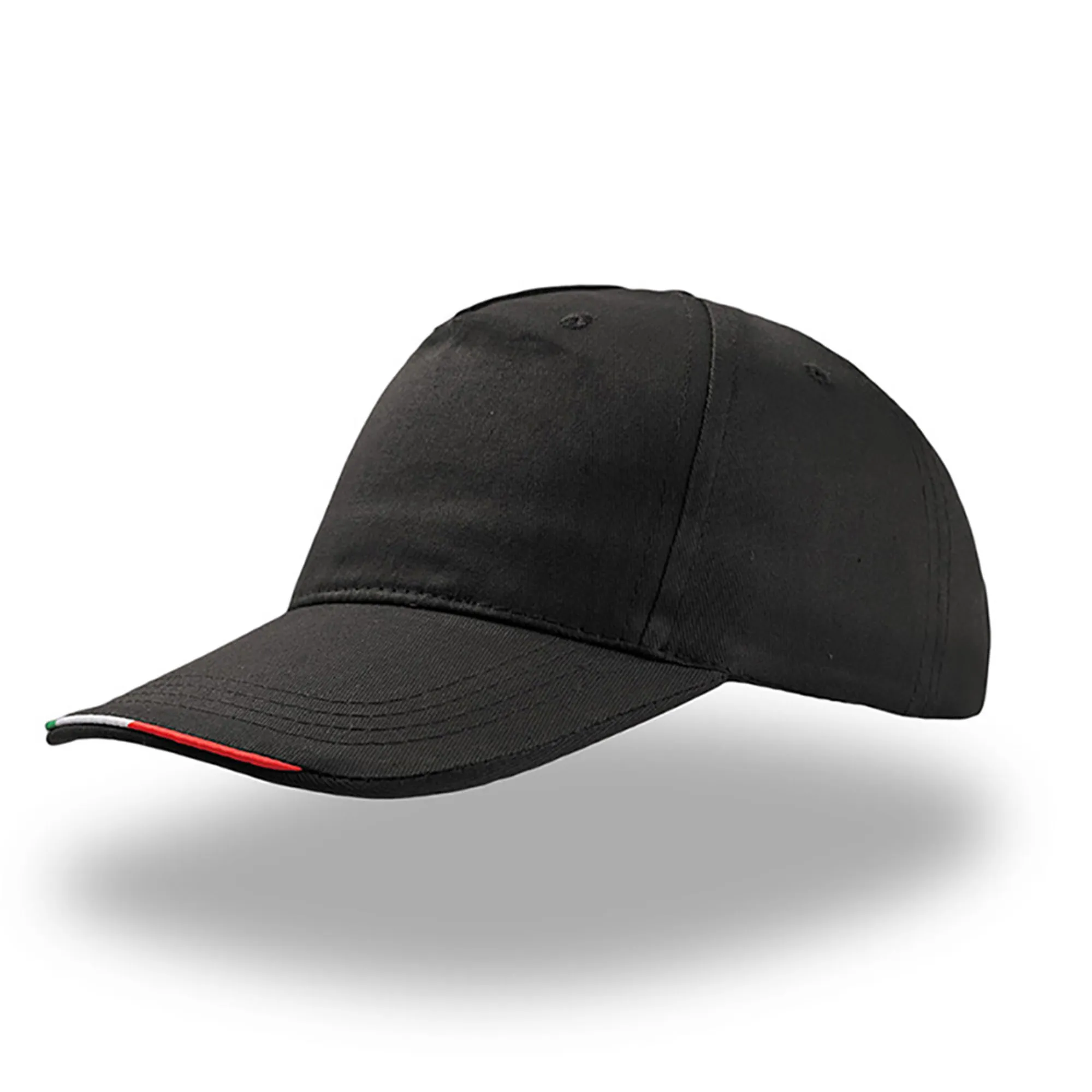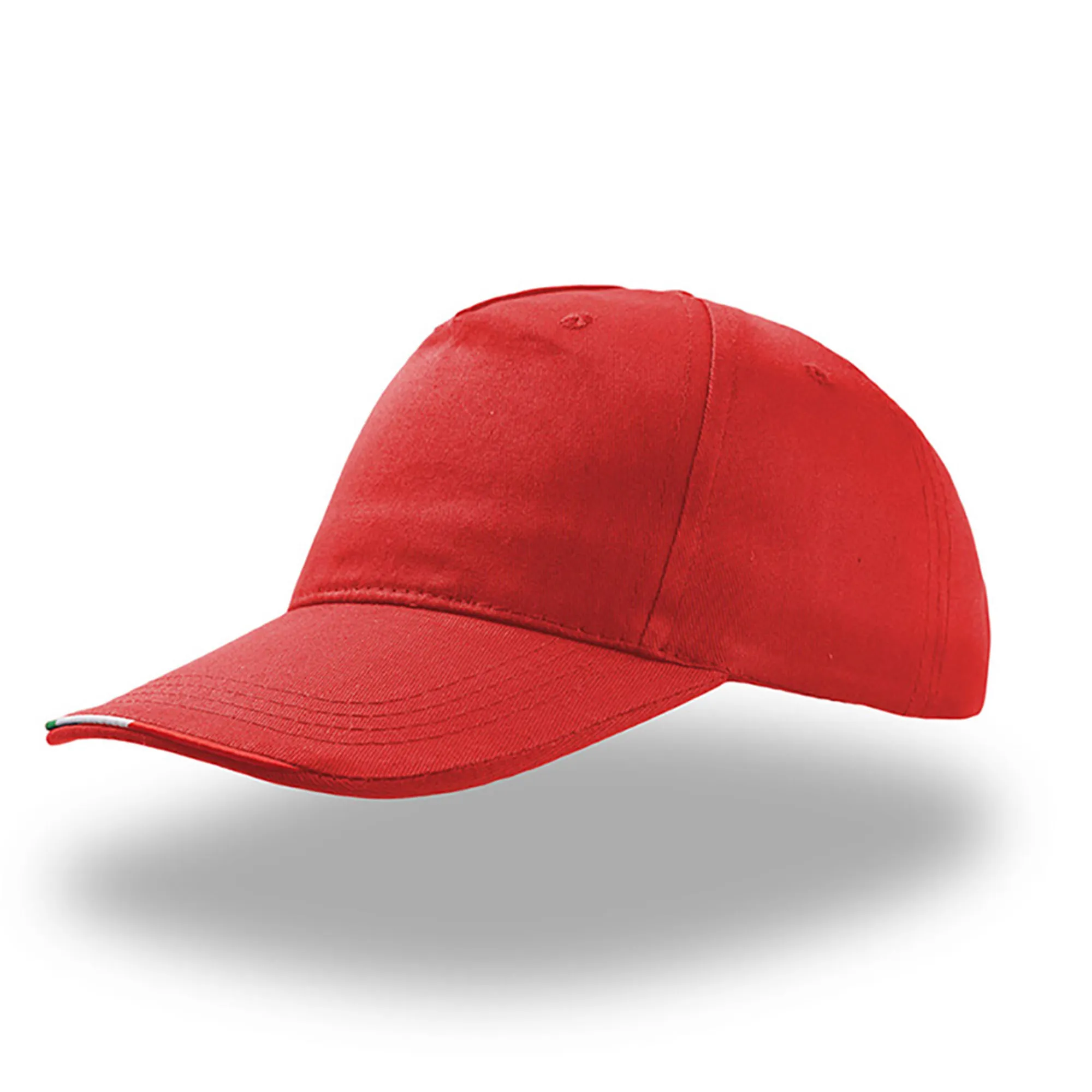 O boné de 5 painéis em 100% algodão leve, com pormenor de contraste na pala com as cores da bandeira italiana, adequado para qualquer evento e mundo promocional.Boné Start Five Italia, 100% algodão