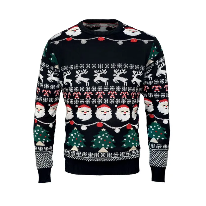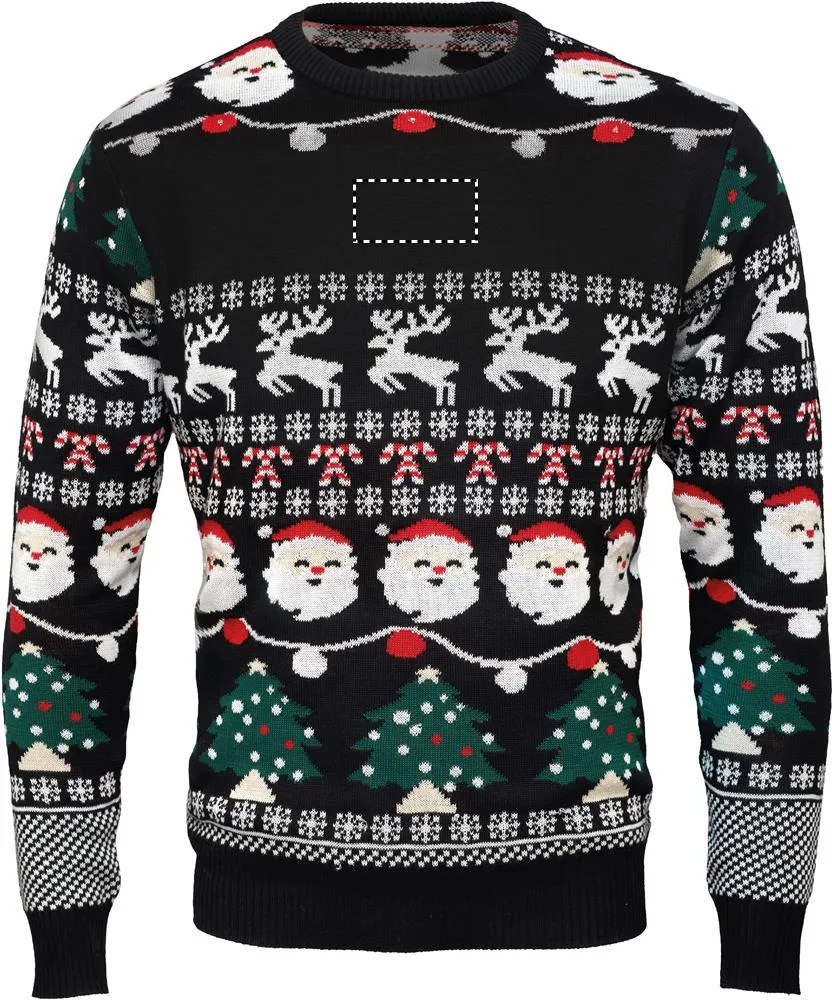 Camisola de Natal com 10 luzes LED em acrílico. Tamanho: L/XL. Apareça no trabalho ou no jantar de Natal da família em grande estilo com esta camisola festiva. Compartimento de pilhas amovível. Inclui 2 pilhas CR2032.Camisola Natal luz LED L/XL