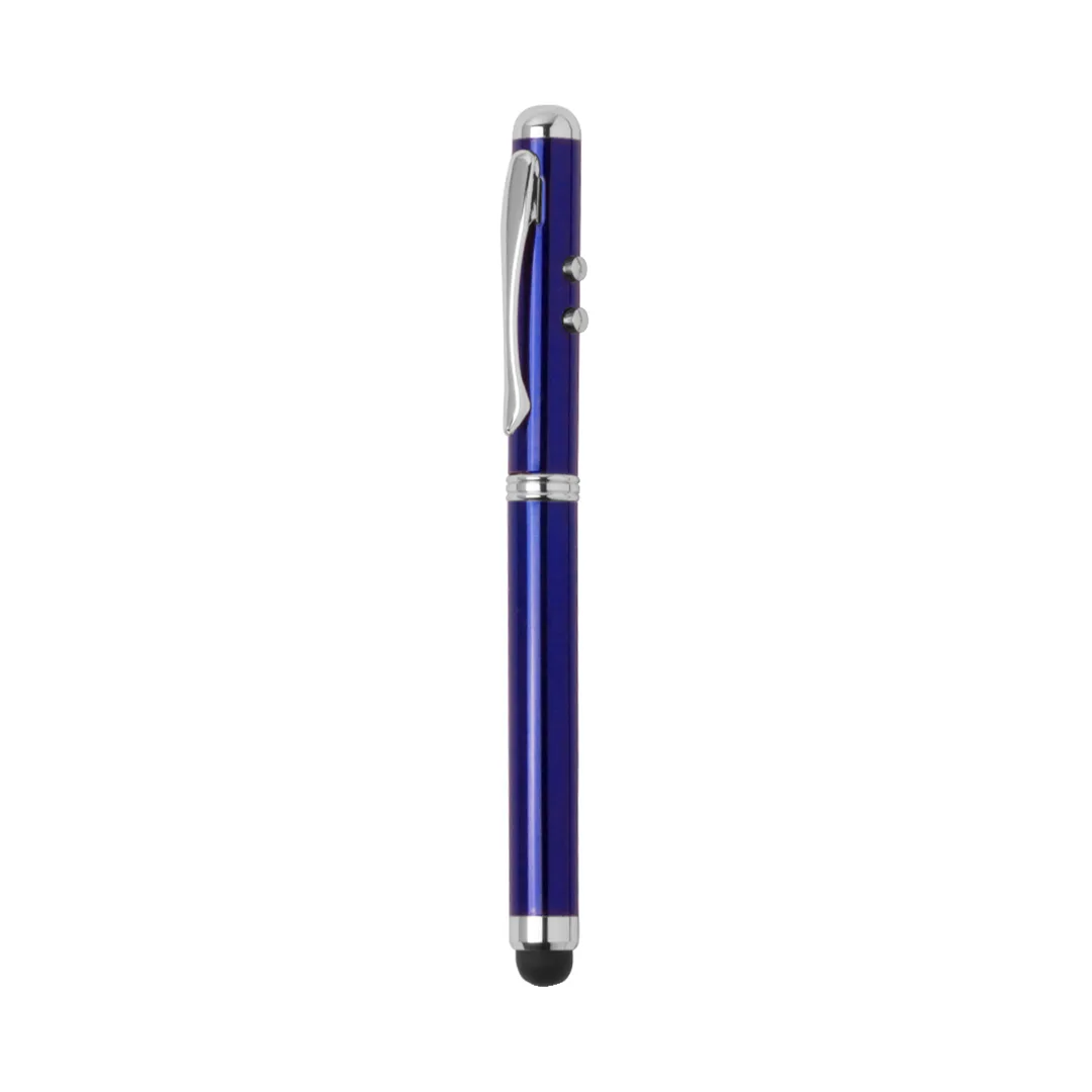 Ref: BEC4564MOEsferográfica láser metálica em elegante acabamento brilho, com botões de activação laterais para funções láser e lanterna (pilhas de botão incluídas). Em tinta azul, com ponteiro tátil integrado, fecho de tampa e clip cromado. Especialmente desenhada para impressão a laser. Apresentada num elegante estojo metálico em caixa individual de cartão de acabamento prateado. Interior em suave esponja recortada, com pilhas suplentes.