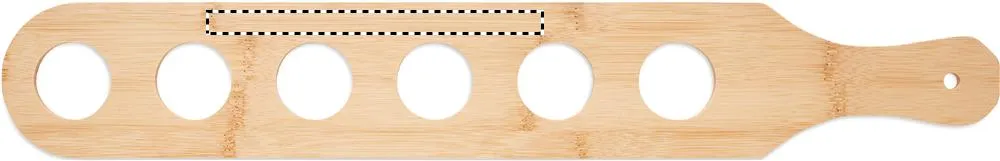Conjunto de 6 copos de shot num tabuleiro de bambu. Capacidade: 20 ml. O bambu é um material natural, a cor do item, o tamanho e a impressão podem variar.Conjunto de 6 copos de shot