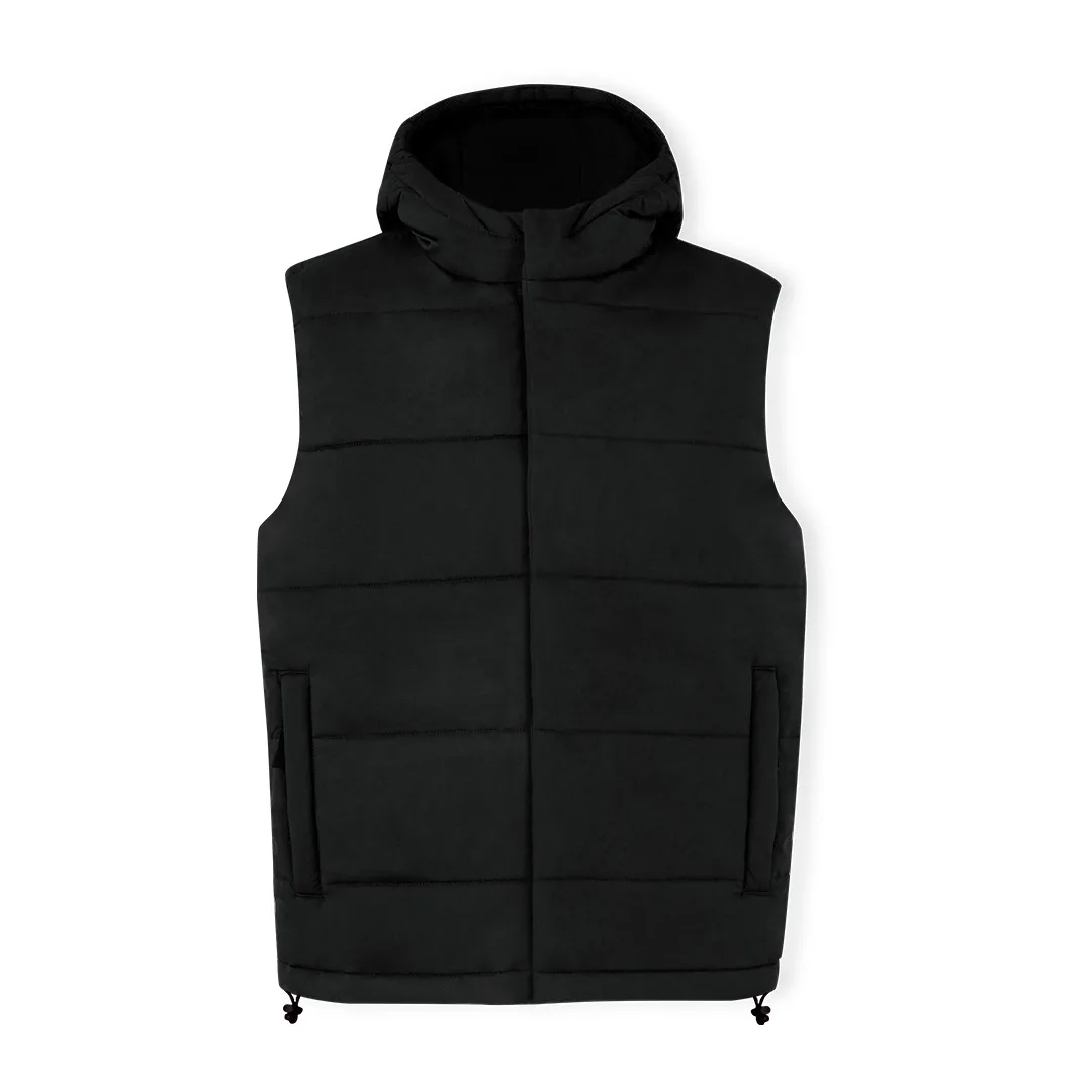 Ref: BEC47102MOColete com capuz em material quente e macio 100% poliéster. Feito de material leve, resistente ao vento e à água. Design elegante de construção horizontal e acolchoada, com capô fixo integrado. Fecho frontal duplo e ganchos. Bolsos laterais com puxadores a condizer e cordão ajustável na bainha. Disponível nos tamanhos XS, S, M, L, XL, XXL.