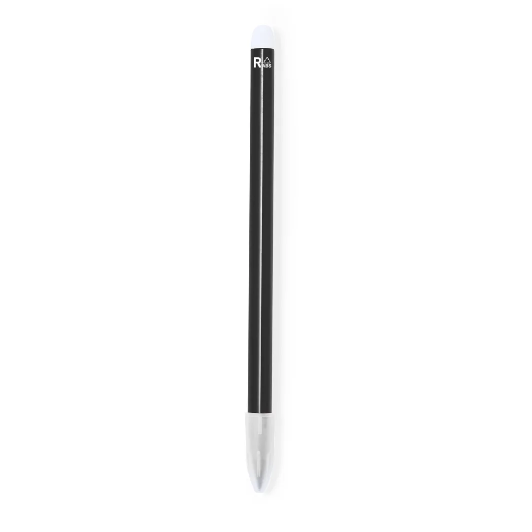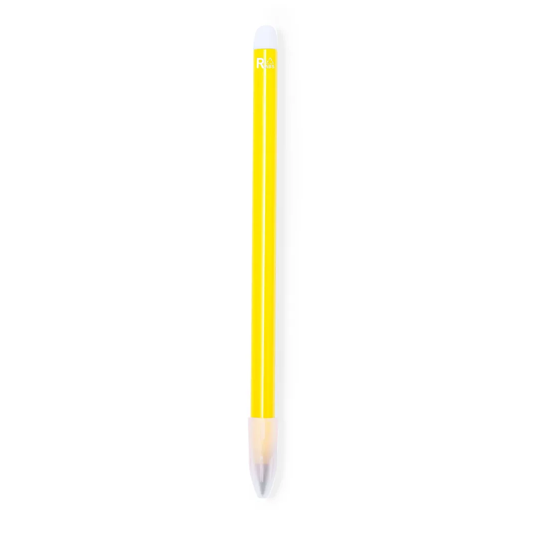 Lápis eterno fabricado em RABS. Reutilizável e com escrita infinita, para usar sempre o mesmo lápis e não gerar resíduos. Inclui borracha na parte superior do lápis e tampa para proteger a ponta. Com distintivo de RABS num extremo do lápis. Disponível numa ampla gama de cores.O RABS é um plástico altamente reciclável de grande resistência e com uma multiplicidade de aplicações que o convertem numa solução eco-friendly. Com certificação RCS, que garante a sua origem reciclada.ABS Reciclado