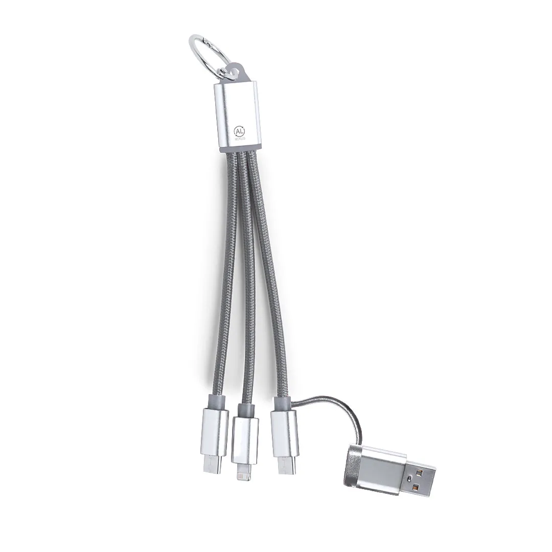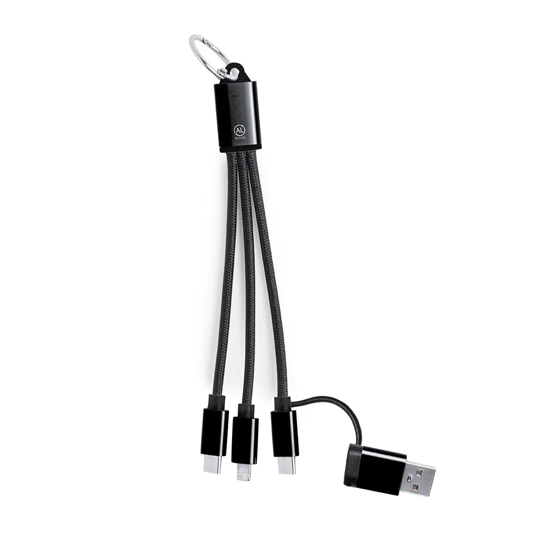 Ref: BEC47712MOCabo carregador de alumínio reciclado. Com dupla ligação de entrada Type-C/USB e saídas Type-C, Lightning e Micro USB. O alumínio reciclado é um material com possibilidades quase infinitas de reciclagem, sem perder as suas propriedades originais e consumindo menos energia neste processo. Certificação GRS (Global Recycled Standard), que garante a origem reciclada do material utilizado para produzir o produto. Conexão Micro USB, Type-C e Lightning 5V DC 2.4A.