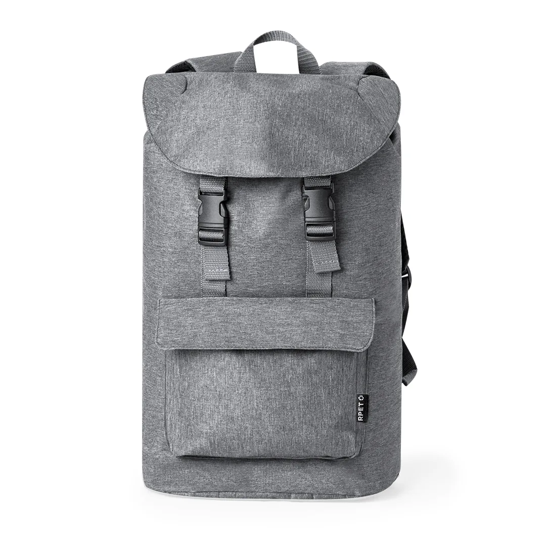Mochila fabricada em resistente 600D RPET. O bolso principal fecha-se com cordão e conta com uma aba com fecho duplo, enquanto que que o bolso frontal tem uma aba com fecho de velcro. As alças para os ombros são acolchoadas e ajustáveis. Está disponível em várias cores e é apresentada de maneira individual numa bolsa reciclada. Logotipo RPET na etiqueta exterior.O material RPET é elaborado a partir de plástico reciclado, para assim fomentar a reutilização de resíduos plásticos e ajudar à sustentabilidade do planeta.Poliéster 600D RPETBolso Acolchoado para Portátil. Parte Traseira e Alças Acolchoadas