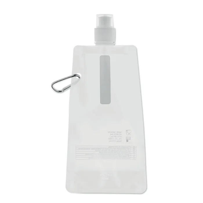 Garrafa de água dobrável em PET, livre de BPA com mosquetão de alumínio. Capacidade 480 ml. Anti vazamento.Garrafa para água