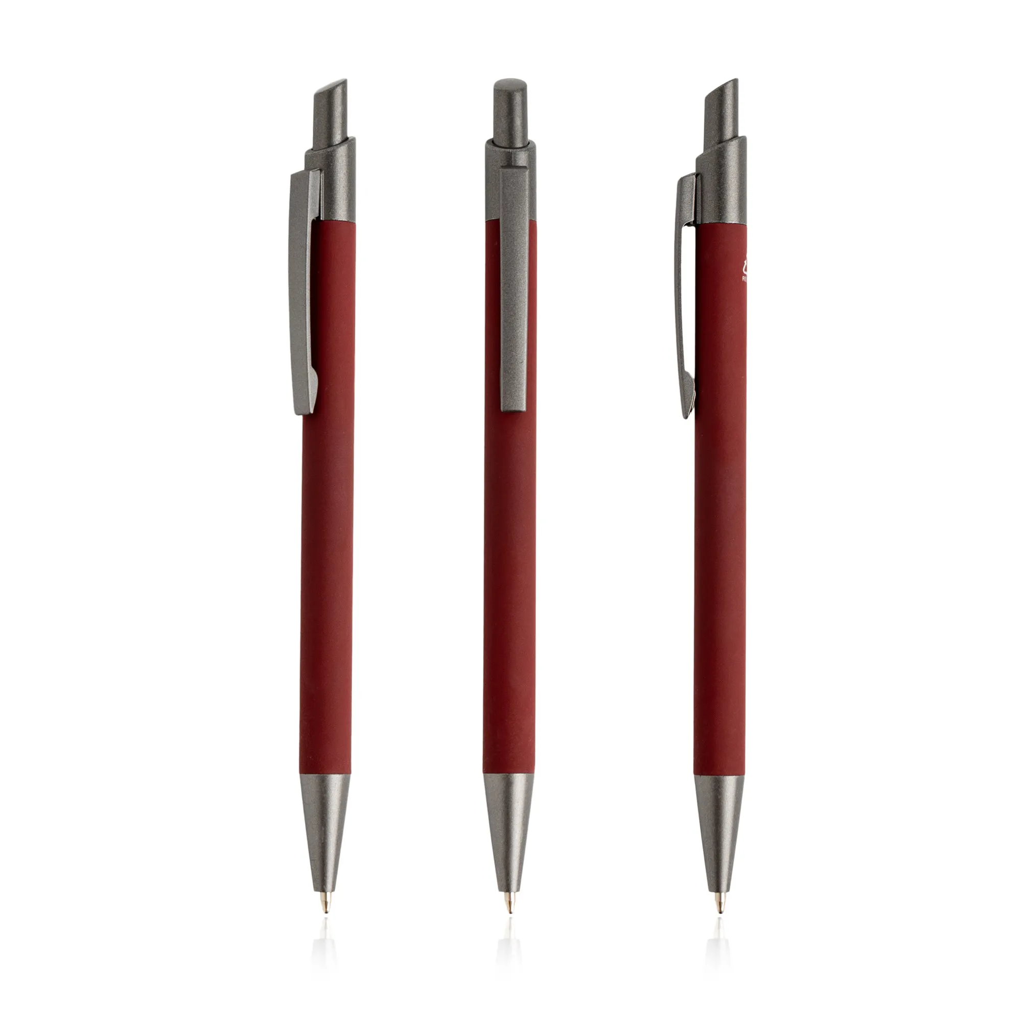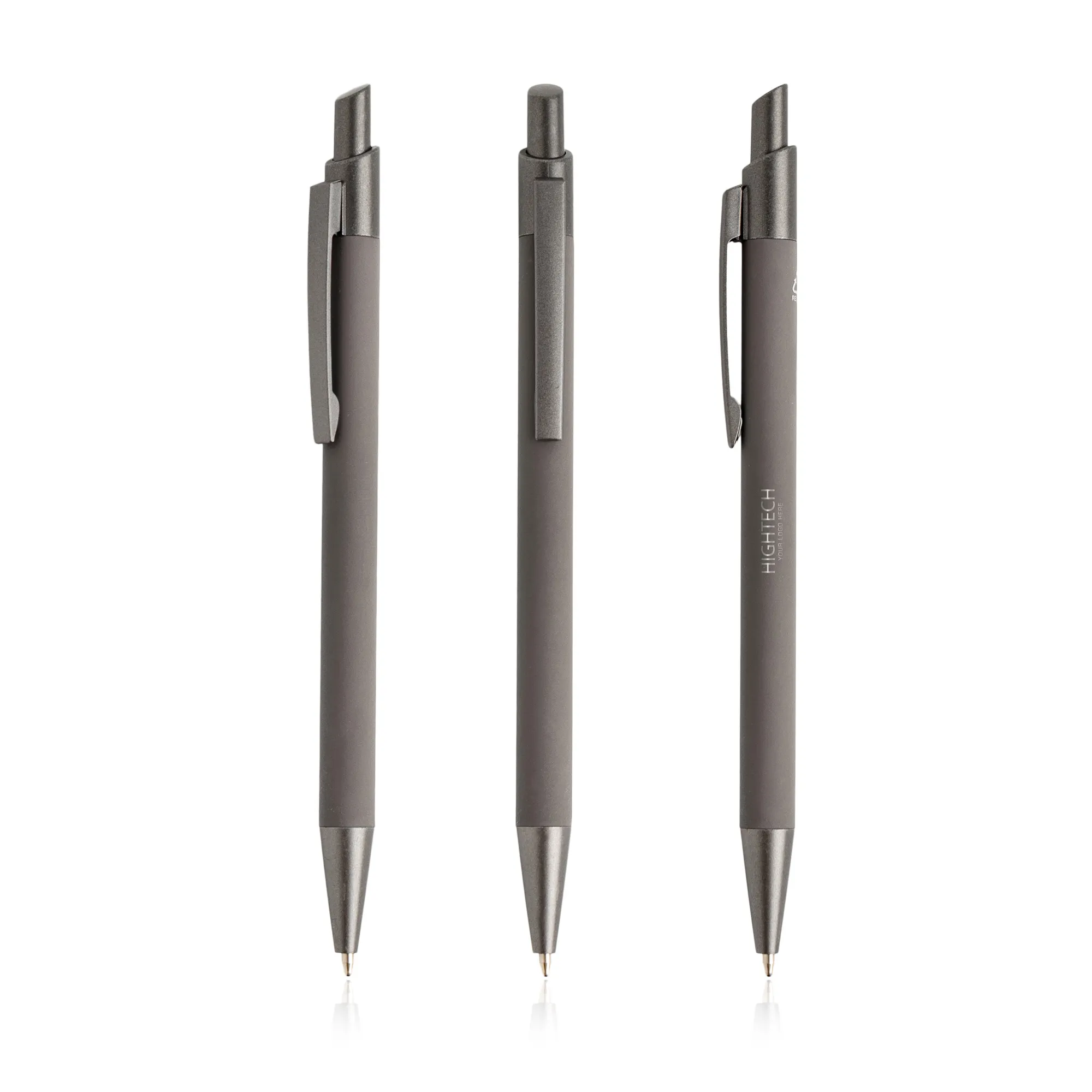 Esferográfica em alumínio reciclado, toque de borracha. Um brinde amigo do ambiente que oferece um design moderno, com o toque elegante de borracha. Esta esferográfica push vem com escrita preta.Esferográfica em alumínio reciclado, toque de borracha