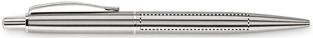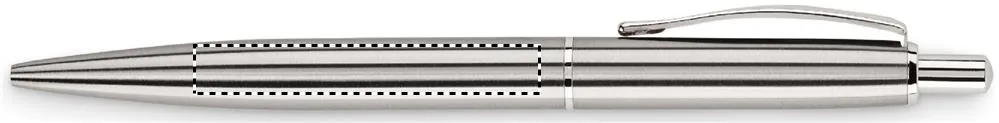 Caneta com botão de pressão com cano de aço inoxidável reciclado. Apresentada em caixa de cortiça a condizer. Tinta azul. A cortiça é um material natural, devido à sua natureza estrutural e porosidade da superfície, o resultado final da impressão por item pode ter desvios.Caneta de aço inox reciclado