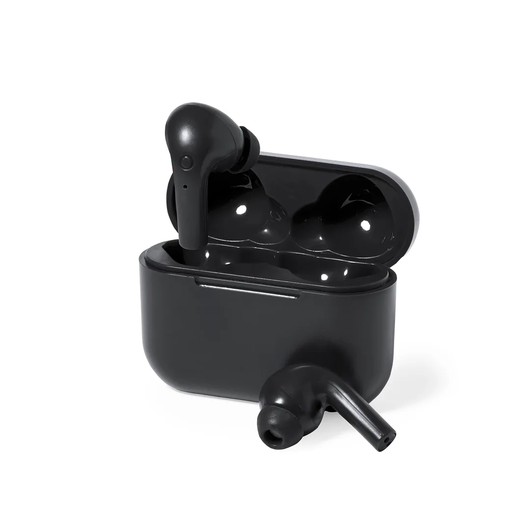 Auriculares intraurais Bluetooth® 5.3. De design ergonómico disponíveis numa variada gama de cores, com almofadas de substituição a condizer. Inclui botão de controlo integrado no auricular, com base de carregamento a condizer e luz LED de estado de carga. Função mãos livres e recarregável por USB, com cabo Tipo C incluído e bateria de 35 mAh em cada auricular. Base de carga a condizer, com bateria integrada de 300 mAh e apresentados em caixa de design individual. Manual de instruções em espanhol e inglês.Conexão Bluetooth. Bateria 35 mAh/ Base de Carregamento 300 mAh