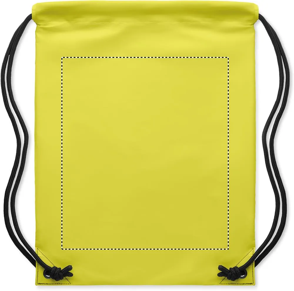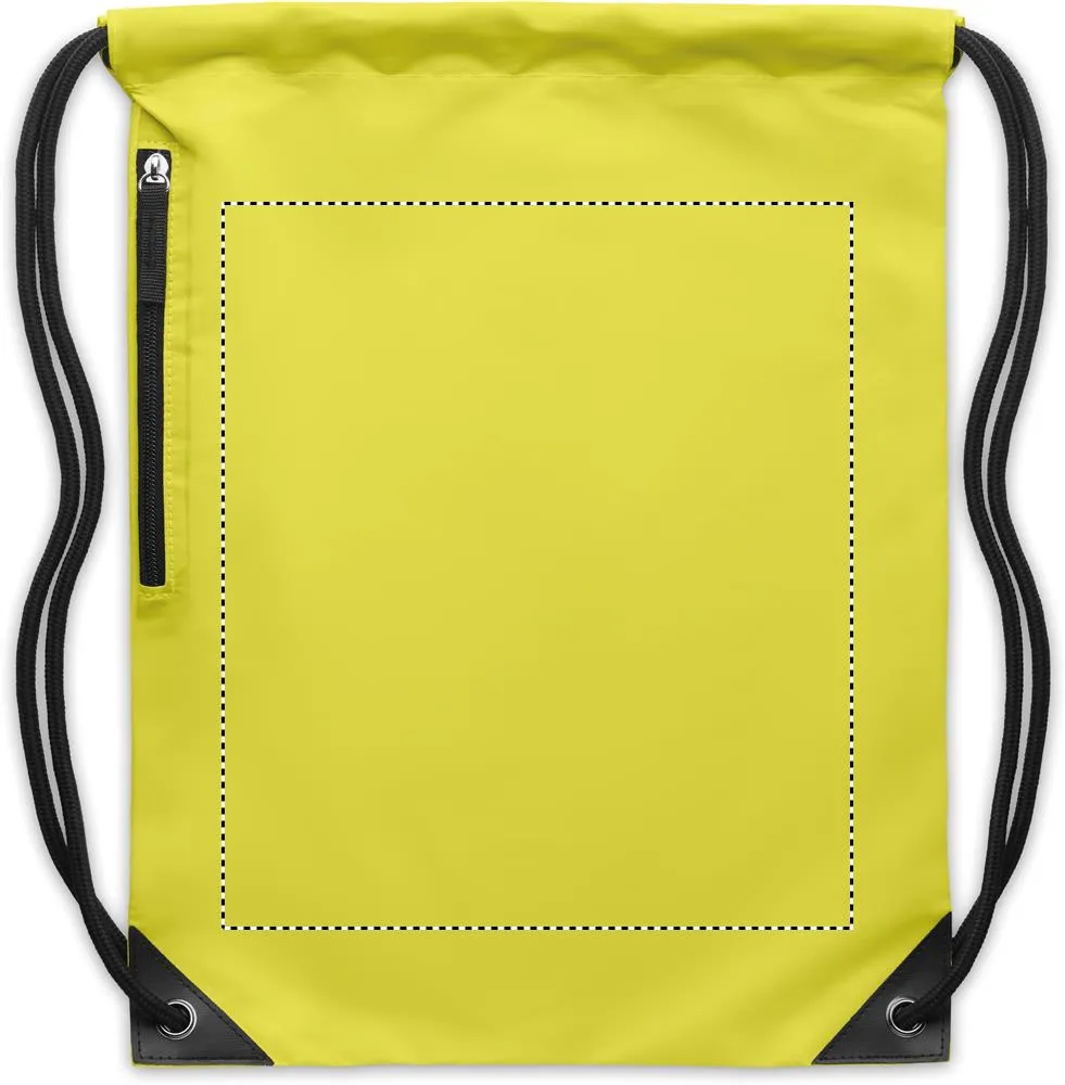 Saco com cordão em poliéster 190T revestido com granulado reflector. Inclui um bolso com fecho de correr num dos lados. Cordão grosso.Saco acabamento brilhante