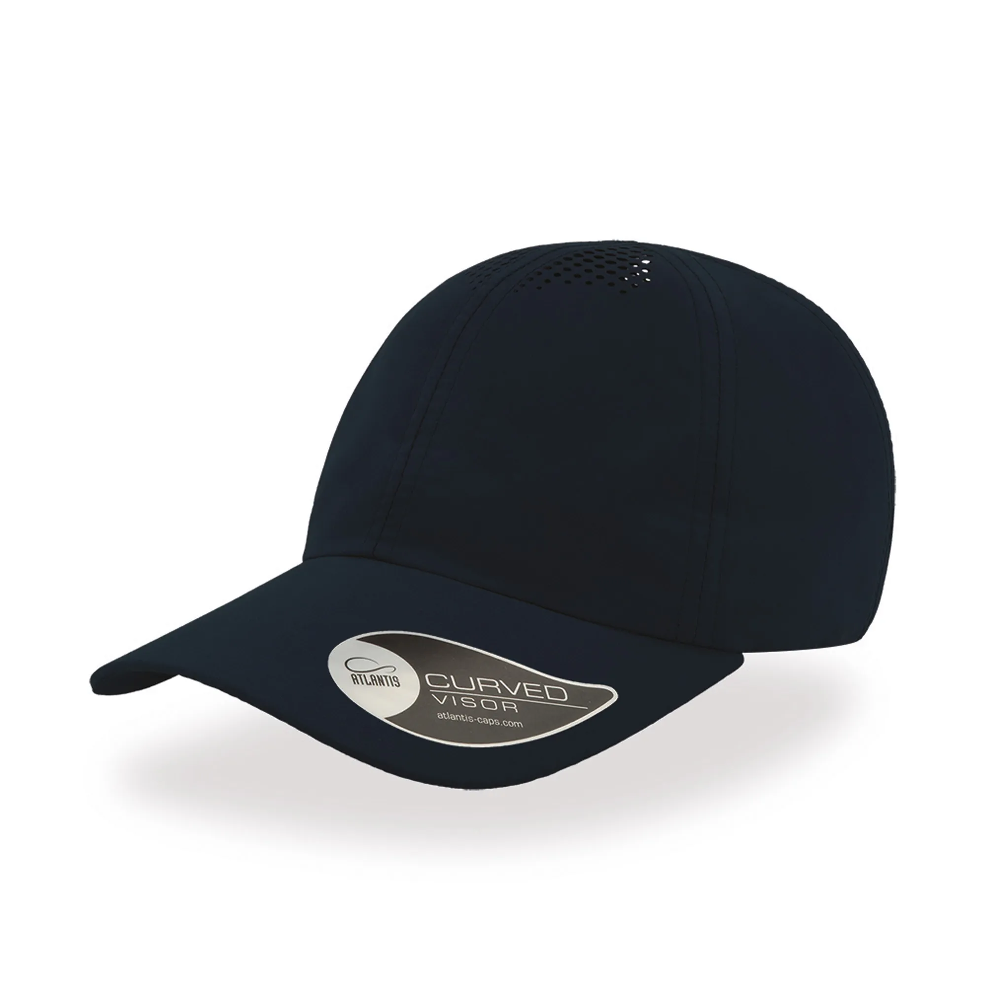 Boné de baseball de 6 painéis em poliéster macio, com orifícios a laser na parte superior dos painéis.Boné Air, 100% poliéster