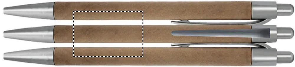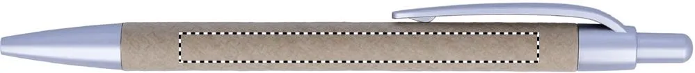 Esferográfica com pulsador, com corpo de papel reciclado e acabamentos em ABS. Escrita azul.Caneta com corpo de cartão