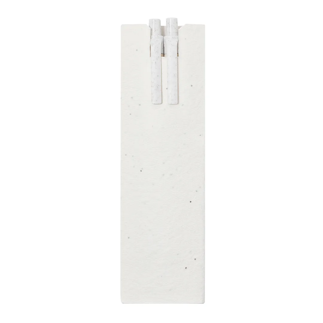 Conjunto de caneta e lápis eterno feito a partir de caixas de leite recicladas, apresentado em caixa de papel com sementes. Caneta esferográfica com tinta azul e lápis com ponta eterna, para usar sempre o mesmo lápis sem gerar desperdício, tanto com mecanismo de botão e clipe coordenado feito de Cane di Grano, com crachá gravado. Com crachá de papelão de leite reciclado no corpo. O estojo inclui sementes de petúnia, tornando-o papel plantável no final de sua vida útil. Inclui instruções de plantio na tampa traseira. As embalagens de cartão para leite são maioritariamente compostas por cartão e alumínio. Durante o seu processo de reciclagem, os vários materiais da embalagem são separados para a sua reutilização e reutilização, ajudando assim a percorrer o caminho infinito da economia circular. Este material caracteriza-se pelo seu elevado grau de reciclabilidade, bem como pela sua leveza e resistência. Cane di Grano promove o uso de matérias-primas naturais, reduzindo assim as emissões poluentes.Pacotes de Leite Reciclados/ Palha de Trigo/ ABSEsferográfica e Lápis Eterno. Bolsa Papel de Semente. Sementes de Petúnia. Flores Cores Sortidas